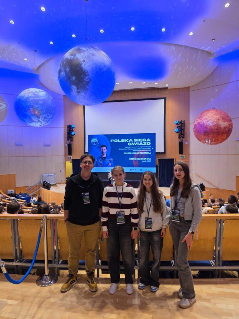 Reprezentacja uczniów naszej szkoły wzięła udział w wyjątkowym wydarzeniu „Polska sięga gwiazd”, które odbyło się 18.11.2025r. na Politechnice Poznańskiej. Podczas spotkania młodzież miała możliwość wysłuchania inspirującej prelekcji Sławosza Uznańskiego-Wiśniewskiego – polskiego astronauty ESA, który podzielił się swoją historią i doświadczeniami.